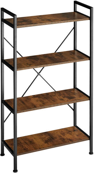 A Tectake Leeds polc praktikus és elegans. Az acélváz és a fa polc vonzó kontrasztot hoz létre. A nyitott bútor négy szinttel az irodai dokumentumok vagy személyes tárgyak számára. A stabil és univerzális polcot, állítható magasságú csavaros lábakkal, könnyű kezelhetőség jellemzi. Minden tekintetben kellemes kiegészítője a belső térnek. ELŐNYÖK Rusztikus álló polco