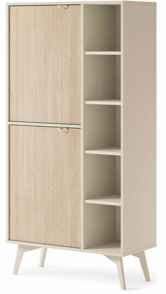 Ismerkedjen meg a Forest polcos szekrényünkkel, amely egy kétajtós szekrénnyel is rendelkezik. Ez egy tökéletes skandináv stílusú bútor darab, amely igazán praktikus tulajdonságokkal rendelkezik. A bútor 16 mm vastag laminált bútordaraból készült, amely biztosítja az ellenálló képességét és a hosszú élettartamát. A bézs színének köszönhetően lágy és természete