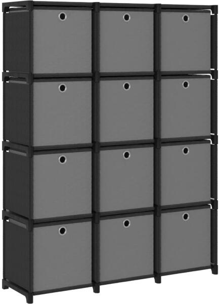 A 12 dobozzal ellátott kijelző polcunk modern megjelenéssel ruházza fel lakberendezését. A tárolóállvány szövetből készült és acélvázzal rendelkezik, így robusztus és stabil. Ez a szabadon álló polc 12 nyitott rekesszel lett ellátva és mindegyik rekesz tartalmaz egy szövetdobozt, amelyek elegendő helyet biztosítanak holmijai tárolásához, hogy szobája rendezett maradha