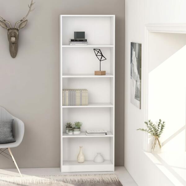 Tágas könyvespolc könyvei tárolására. Egyszerű, modern stílusának köszönhetően minden otthonba illik. Fehér színű kivitel. Laminált forgácslapból készült. Anyagvastagság: 1,8 cm. Polcok száma: 6. Maximális terhelhetőség: 15 kg.