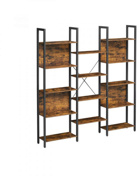 Vasagle Loft 3 szekcióból álló könyvespolc és tároló polc rendszer. A fekete fém váz és industrial stílusú bútorlap modern, esztétikus látványt nyújt. Nagyméretű, 14 polcos kivitel, polconként 10 kg teherbírással. Praktikus bútor bármilyen helyiségbe, könyvek, dísztárgyak és egyéb használati eszközök mindennapi tárolására. Anyaga rozsdamentes porfestett acél