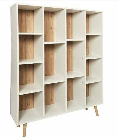 Nyitott polcos szekrény termékjellemzők: Színe: fehér, bézs Anyaga: fa A termék mérete: 116 x 100 x 24 cm A csomag mérete: 113,5 x 30 x 11,8 cm Bruttó súlya: 20,2 kg Csomag tartalma: 1x nyitott polcos szekrény