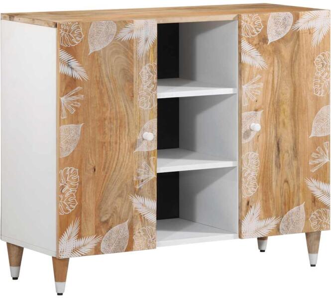 Ez a komód egyszerre kínál dekoratív vonzerőt és praktikus tárolási lehetőséget, így tökéletes kiegészítője otthonának. Robusztus és stabil: A tömör mangófa egy erős, trópusi keményfa, mely rendkívüli tartóssága és szilárdsága miatt különösen kedvelt a bútorgyártásban. A fa gyönyörű erezetének köszönhetően minden darab kissé különbözik a többitől.