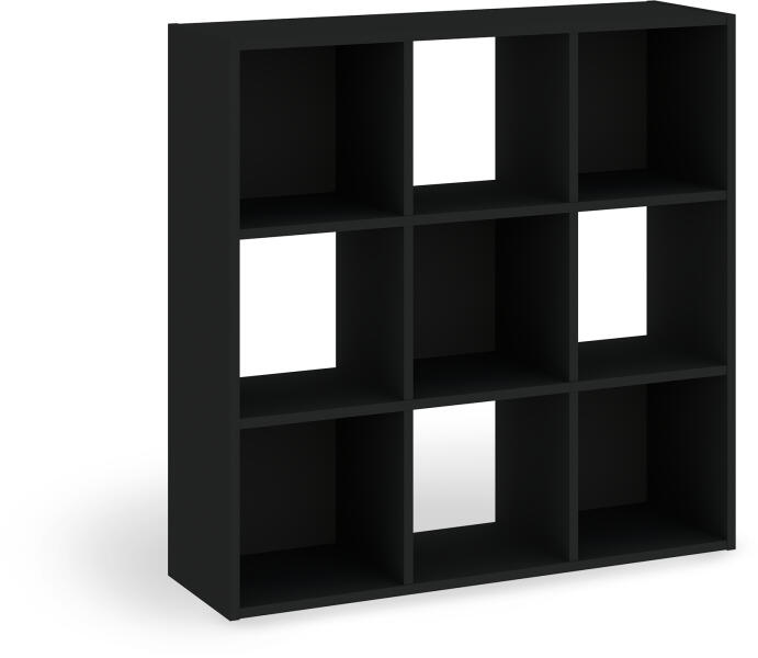 Kocka formájú gyönyörű és praktikus fekete színű modern CATCHY 9P könyvespolc. Ennek az eredeti designnak köszönhetően a Catchy könyvespolc tökéletes választás lehet a nappaliba, a dolgozószobába vagy a gyerekszobába is, ahol praktikus és esztétikus tároló helyet kínál. Ez az egyedi polcos szekrény kilenc nyitott polccal rendelkezik, amelyek helyet biztosítanak a könyv