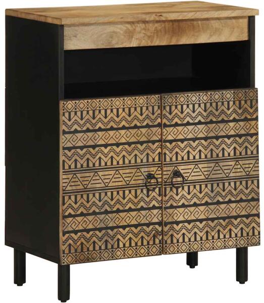 Ez a klasszikus tálalószekrény otthona dekoratív és praktikus kiegészítője lesz. Robusztus és stabil: A tömör mangófa egy erős, trópusi keményfa, mely rendkívüli tartóssága és szilárdsága miatt különösen kedvelt a bútorgyártásban. A fa gyönyörű erezetének köszönhetően minden darab kissé különbözik a többitől. Bőséges tárolóhely: Ez a szekrény bőséges
