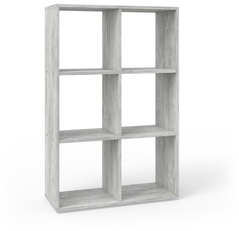 Ez a 6 rekeszes térelválasztó polc stílusos és elegáns teret hoz létre az Ön számára. Díszítse szobáját ezzel a bútorral és tágas, nyitott polcokkal. Akár könyvespolcként, akár tárolópolcként az emléktárgyai részére. Anyag: 16 mm forgácslap, melamin bevonat Szín: beton Modern térelválasztó polc Négy lábbal, padlóvédővel Méretek: 72 x 107,8 x 29 (szélxmagxmé