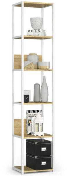 Loft stílusú fém polcos szekrény 6 polccalVáz színe: fehér Polc színe: artisan tölgy 16 mm-es kopásálló laminált lapból készült. ABS élzárással Méretek: Szélesség - 40 cm Magasság - 192 cm Mélység - 32 cmA loft stílusú fém polcos szekrény egy praktikus és modern bútor, amely jól mutat mind a nappaliban, mind az irodában. Fehér fém vázas polcos szekrény 6 artisa