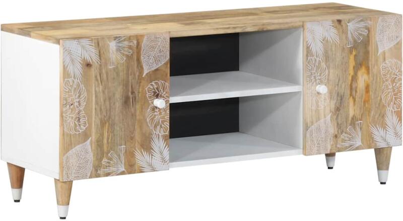 Ez a bőséges tárolóhellyel rendelkező TV-szekrény nappalija vagy hálószobája praktikus és szemet gyönyörködtető kiegészítője lesz. Robusztus és stabil: A tömör mangófa egy erős, trópusi keményfa, mely rendkívüli tartóssága és szilárdsága miatt különösen kedvelt a bútorgyártásban. A fa gyönyörű erezetének köszönhetően minden darab kissé különbözik a t