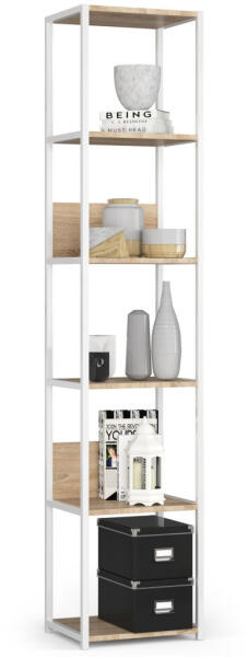 Modern, loft stílusú fém állvány 6 polccal, amely tökéletes választás otthoni vagy irodai tároláshoz. A fehér fémváz és sonoma tölgy polcok elegáns kombinációja praktikus tárolási megoldást kínál mindössze 40 cm szélességben. Stílusos és praktikus tárolási megoldás modern otthonokbaEz a karcsú, 192 cm magas loft állvány tökéletesen ötvözi a funkcionalitást