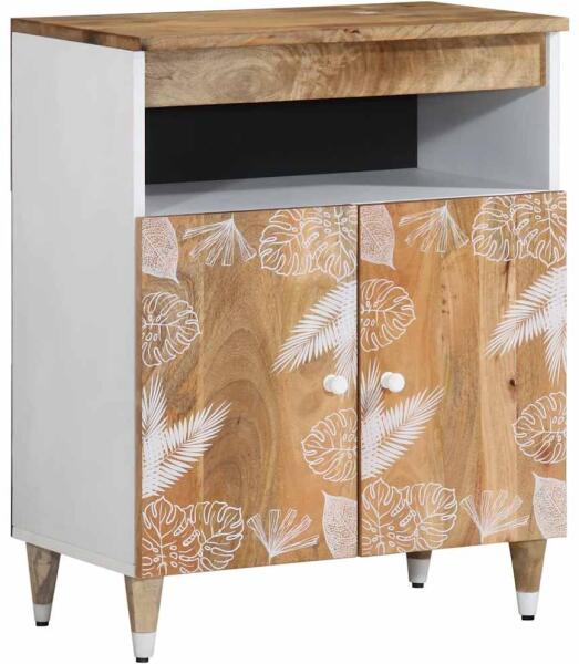 Ez a komód egyszerre kínál dekoratív vonzerőt és praktikus tárolási lehetőséget, így tökéletes kiegészítője otthonának. Robusztus és stabil: A tömör mangófa egy erős, trópusi keményfa, mely rendkívüli tartóssága és szilárdsága miatt különösen kedvelt a bútorgyártásban. A fa gyönyörű erezetének köszönhetően minden darab kissé különbözik a többitől.