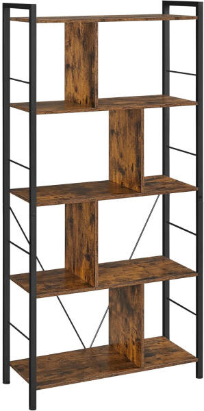 Műszaki adatok: Szín: rusztikus barna, fekete Anyaga: acél, agglomerált forgácslap Termék mérete: 74 x 30 x 150 cm (H x Sz x Ma) A termék súlya: 15,7 kg Az egyes polcok maximális statikus terhelése: 30 kg A csomag tartalma: 1 x Könyvtár 1 x összeszerelő készlet 2 x dőlésgátló eszköz 1 x Útmutató VASAGLE megjegyzi: Biztonsági okokból gyermekek nem mászhatnak fel a termékr