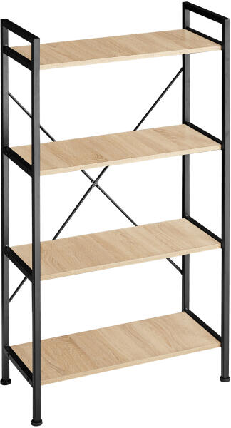 A Tectake Leeds polc praktikus és elegans. Az acélváz és a fa polc vonzó kontrasztot hoz létre. A nyitott bútor négy szinttel az irodai dokumentumok vagy személyes tárgyak számára. A stabil és univerzális polcot, állítható magasságú csavaros lábakkal, könnyű kezelhetőség jellemzi. Minden tekintetben kellemes kiegészítője a belső térnek. ELŐNYÖK Rusztikus álló polco