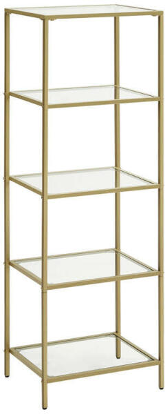 Univerzális 5 polcos rendszerező / tároló, minőségi porfestett arany acél vázzal és edzett üveg polcokkal. Polconként 10 kg teherbírással rendelkezik. Állítható magasságú lábak. Tökéletes bútordarab kiegészítő konyhai tárolóként, nappalikba vagy étkezőkbe is. Kis helyigénye ellenére rengeteg tároló kapcitást kínál. Szélesség: 40 cm Magasság: 124.5 cm Mélys