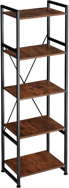 Ez a fa könyvszekrény tökéletesen beleillik otthonába, modern és ipari megjelenést kölcsönöz. A könyvespolc fenyőfából és fémvázból készült, mely erőt, tartósságot és hosszan tartó használatot kölcsönöz neki. 5 polccal rendelkezik, melyek bőséges helyet kínálnak könyvek, magazinok és egyéb dísztárgyak számára. A könyvállvány nedves ruhával könnyen tiszt