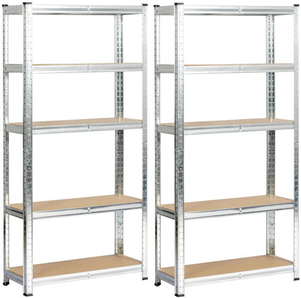 Strapabíró, galvanizált ezüst fém polcrendszer MDF polcokkal, ideális garázs és műhely tároláshoz. Polconként 175 kg teherbírással és 5 szinttel rendelkezik, praktikus megoldást kínál a hatékony tároláshoz. Professzionális tárolási megoldás garázsába és műhelyébeEz a robusztus fém polcrendszer tökéletes megoldást kínál a garázs, műhely vagy tárolóhelyiség r