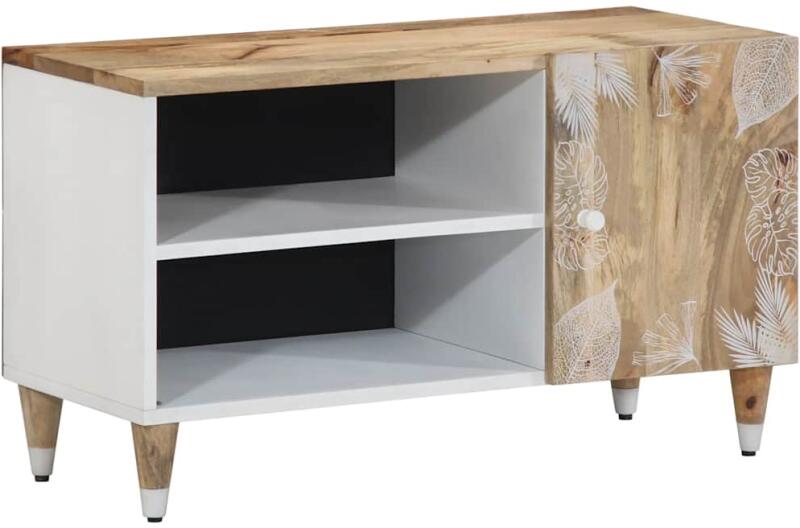 Ez a bőséges tárolóhellyel rendelkező TV-szekrény nappalija vagy hálószobája praktikus és szemet gyönyörködtető kiegészítője lesz. Robusztus és stabil: A tömör mangófa egy erős, trópusi keményfa, mely rendkívüli tartóssága és szilárdsága miatt különösen kedvelt a bútorgyártásban. A fa gyönyörű erezetének köszönhetően minden darab kissé különbözik a t
