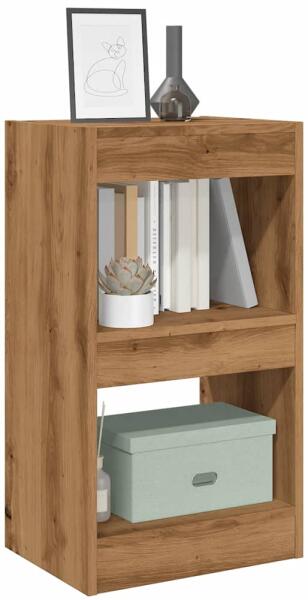 Ez a kompakt és praktikus könyvespolc visszafogott stílusával minden lakberendezési stílushoz jól illik. A minőségi forgácslapból készült könyvespolc rendkívül tartós és stabil, így hosszú élettartamú. Két szintjén, valamint erős tetején különféle tárgyakat helyezhet el, például könyveket, DVD-ket, CD-ket, játékgyűjteményeket, iratokat vagy dísztárgyakat. Eme