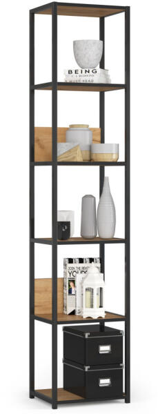 Modern, ipari stílusú polcos állvány 6 praktikus polccal, amely tökéletesen ötvözi a fekete fém vázat és a craft tölgy polcokat. Ideális választás mind otthoni, mind irodai környezetbe a stílusos tároláshoz. Stílusos és praktikus tárolási megoldás modern otthonokbaEz a loft stílusú polcos állvány tökéletes kombinációja a funkcionalitásnak és a design elemeknek. A