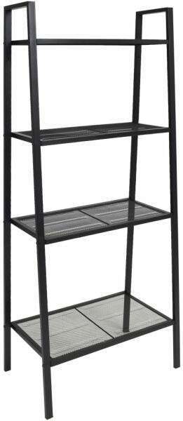 Színe: feketeAnyaga: fémTeljes mérete: 62 x 35,5 x 148 cm (Szé x Mé x Ma)Felső polc mérete: 21,5 x 56 cm (Szé x Ho)Második polc mérete: 25 x 56 cm (Szé x Ho)Harmadik polc mérete: 29 x 56 cm (Szé x Ho)Alsó polc mérete: 33,5 x 56 cm (Szé x Ho)Könnyen összeszerelhető Létra könyvespolcunk nagyszerű kiegészítője lehet fürdőszobájának, nappalijának vagy irodájának. Díszt