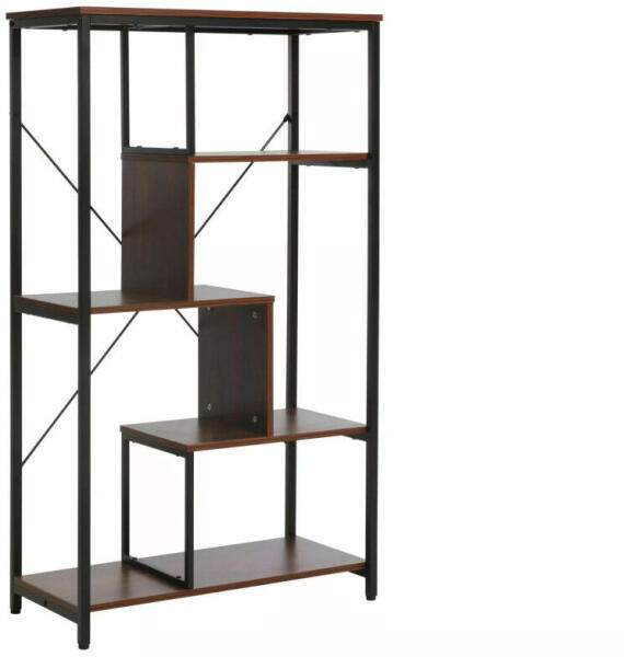 Tágas könyvespolc a könyvek tárolására. Egyszerű, modern stílusának köszönhetően bármilyen otthonba illik. Fa és fekete fém kombinációja. Laminált forgácslapból készült, fémkeret. Az anyagvastagság: 1,8 cm. A polcok száma: 3. Maximális terhelhetőség: 20 kg. Fa mintázata: diófa.