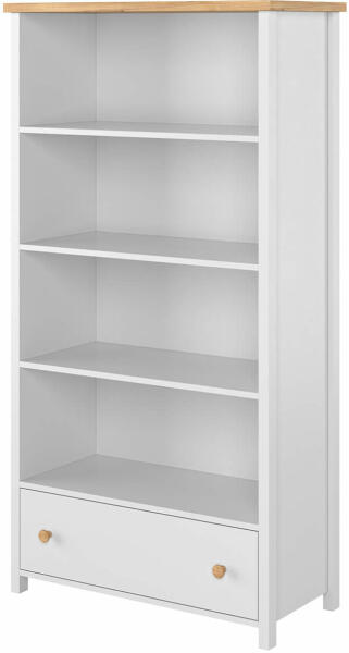 Letisztult, gyönyörű kidolgozásának köszönhetően ez a fából készült könyvszekrény dekoratív és praktikus kiegészítője lesz otthonának. A könyvszekrény tömör fenyőfából készült, így masszív és stabil. A két tágas rekesszel ellátott könyvespolc bőséges helyet biztosít magazinjai, könyvei, DVD-i, multimédiás eszközei és egyéb dísztárgyai kézközelben t
