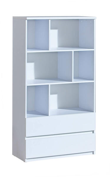 Könyvespolc a könyvek tárolására. Egyszerű, modern stílusának köszönhetően bármilyen otthonba illik. Fehér színösszeállítás. Laminált forgácslapból készült. Az anyag vastagsága: 1,8 cm. Polcok száma: 4. Polcok magassága: 21,4 cm. Maximum terhelhetőség: 4 kg.
