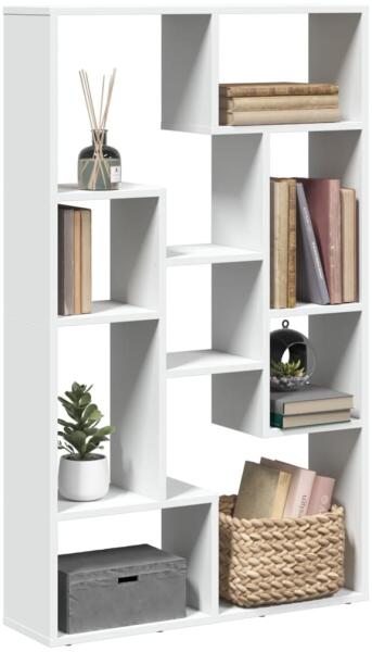 A geometrikus kialakítású, tárolólehetőséggel rendelkező térelválasztó könyvespolc tökéletes a helyiség stílusos rendszerezéséhez! Stabil és tartós anyag: A szerelt fa tartós és stabil anyag sima felülettel, amely ellenáll a nedvességnek, a vetemedésnek és a hasadásnak, így megbízható választás különféle célokhoz. Bőséges tárolóhely: A könyvespolc lépcső