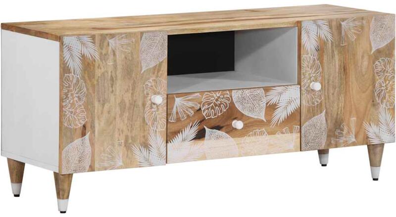 Ez a bőséges tárolóhellyel rendelkező TV-szekrény nappalija vagy hálószobája praktikus és szemet gyönyörködtető kiegészítője lesz. Robusztus és stabil: A tömör mangófa egy erős, trópusi keményfa, mely rendkívüli tartóssága és szilárdsága miatt különösen kedvelt a bútorgyártásban. A fa gyönyörű erezetének köszönhetően minden darab kissé különbözik a t
