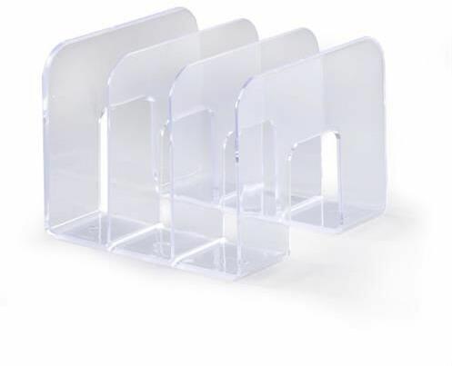 Stílusos katalógus állvány, katalógusok és prospektusok tárolására. - 3 részes - 64 mm széles - áttetsző - méret: 215 x 210 x 165 mm (H x SZ x M)