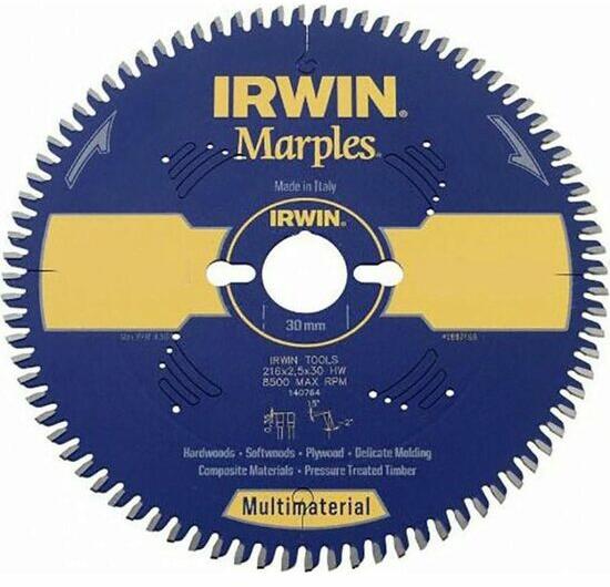 IRWIN Körfűrészlap fához, szegekkel Multi 216/30mm 84TCG Dilatációs furati elősegítik a hő elvezetését, védenek a túlmelegedéstől, valamint megelőzik a körfűrészlap deformációját, elgörbülését, Gyári minőségű keményfém fogazata hosszabb ideig éles marad, A körfűrészlap teljes felületén edzett, Triple Chip Grind teeth (TCG) fogai kitűnőek a befejezőmunkákho