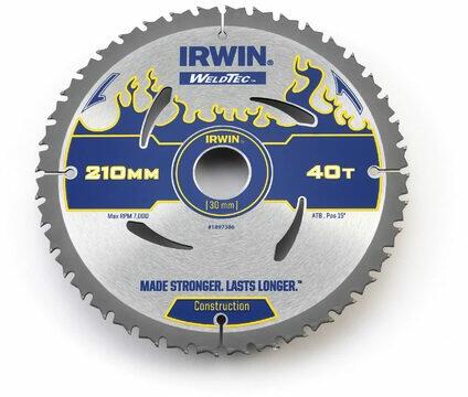 IRWIN Kézi körfűrészlap fához 210/30mm 40ATB HEGESZTETT KARBID KEMÉNYFÉMBŐL KÉSZÜLT FOGAK 30%-kal erősebb kötést biztosítanak a fűrészlaptesttel és 50%-kal hosszabb élettartamot eredményeznek ULTRAKOMAPKT KARBID ANYAG 70%-kal keményebb mint standard változata, amely kíváló minőségű éles vágást eredményez INNOVATÍV FURATOKKAL A HŐELVEZETÉSRE KIALAKÍTVA TELJES FEL