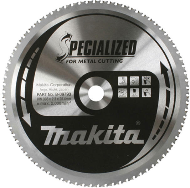Makita Specialized körfűrésztárcsa 305x25,4mm Z78 A Makita fémvágó tárcsái úgy lettek tervezve, hogy gyorsan , tisztán és csendesen vágjanak. A speciálisan kialakított karbidfog ellenáll a gyakori nekiütődéses törésnek. Szemben a hagyományos szilícium-karbid darabolótárcsákkal, nem csak halkabban és tisztábban vág, de akár 30-szor többet is. Gyors és tiszta, sorja,