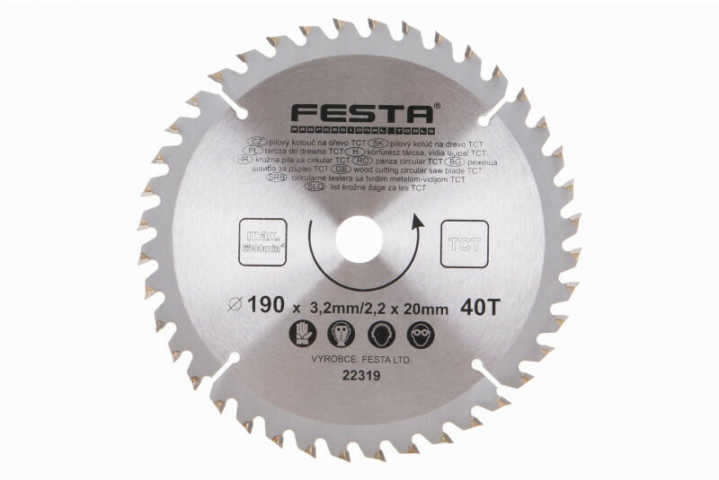 Fűrésztárcsa fához 190 x 20 x 2,2 mm / 40T FESTA