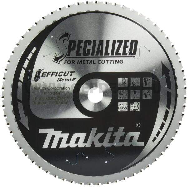 Makita EFFICUT körfűrészlap 305mm f:25,4 Z63 305 mm 25,4 mm 63 fog fém Gyors és hatékony vágás lényegesen kevesebb portermeléssel. Lézervágott résekkel felszerelve a rezgések és zaj csökkentésére, valamint teflon bevonattal ellátva a korrózió és a ragasztóanyagok megtapadása ellen. Az Efficut a fűrészlapok hatékonysága miatt az akkumulátor hosszabb ideig tart. Ez a fű