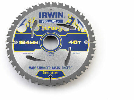 IRWIN Kézi körfűrészlap fához 184/30mm 40ATB HEGESZTETT KARBID KEMÉNYFÉMBŐL KÉSZÜLT FOGAK 30%-kal erősebb kötést biztosítanak a fűrészlaptesttel és 50%-kal hosszabb élettartamot eredményeznek ULTRAKOMAPKT KARBID ANYAG 70%-kal keményebb mint standard változata, amely kíváló minőségű éles vágást eredményez INNOVATÍV FURATOKKAL A HŐELVEZETÉSRE KIALAKÍTVA TELJES FEL