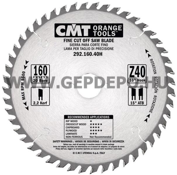 Kimagasló minőségű, ipari felhasználásra tervezett és gyártott fűrészlap Magas minőségű acélból és karbidból készült Ezt a típust használhatjuk fa laminált vagy műanyag (melamin) borítású bútorlap vágásához Elsősorban keresztvágásra fejlesztették, így tökéletesen tiszta vágást biztosít Használható asztali és gérvágó fűrészekben, vagy akár kézi gép