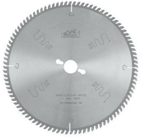 PILANA 97-11 TFZ L keményfémlapkás lapszabász körfűrészlap Kétoldalt laminált bútorlapok és egy oldalt nemesített munkalapok vágására. A KCR lapkákkal gyártott HIGH PROFI kivitelnél nagymértékben csökken a körfűrészlap lebegése és növekszik az éltartósság. Elővágóval, előkarcolóval rendelkező gépre PILANA 97 - 11 TFZ L