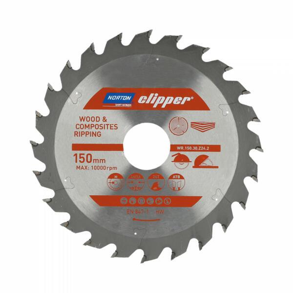 A Norton Clipper Pro körfűrészlapokat kör- és asztali fűrészekhez tervezték. A WR (fahasítás) azt jelenti, hogy ideálisak elsősorban hosszirányú vágáshoz. Ezt a tárcsát puhafa, keményfa és kompozit anyagok vágására tervezték. Acéltestre szerelt TCT szinterezett keményfém fogakból áll. Ezek a megbízható és tartós termékek professzionálisan újraélezhetők, így m