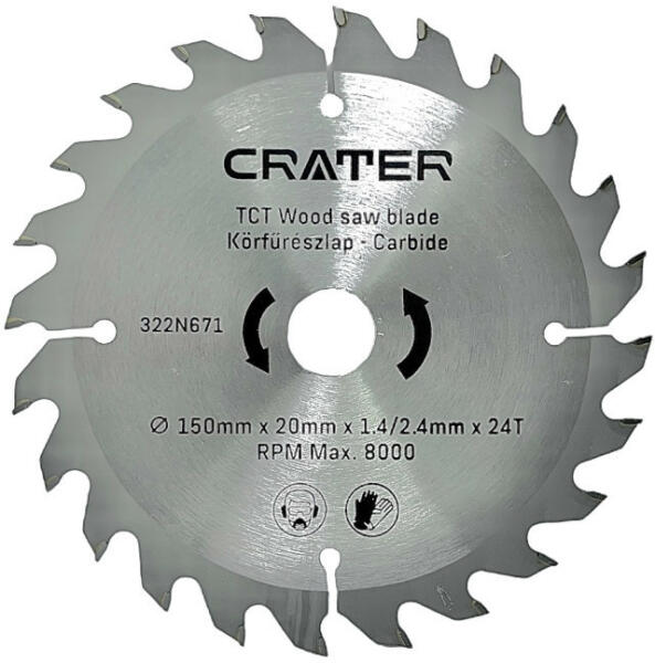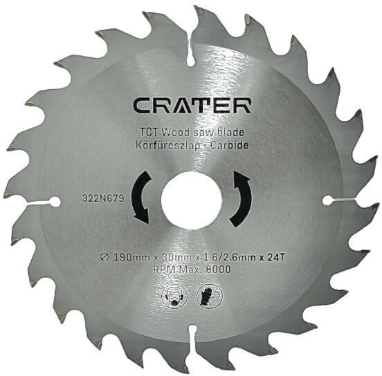 Anyag: szénacél Lézervágott Keményfém fogak tovább maradnak élesek Kiemelkedő vágási minőség Tágulási nyílások a hő eloszlatására, túlmelegedés okozta pengedeformáció megakadályozására Változó ferde fogak 10°-os pozitív horogszög Kompatibilis minden álló és hordozható fűrésszel Méret: 180 mm Furat méret: 30 mm Szűkítő gyűrűk: 22,2 / 16 mm Fog szám: 24