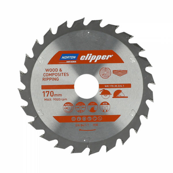 A Norton Clipper Pro körfűrészlapokat kör- és asztali fűrészekhez tervezték. A WR (fahasítás) azt jelenti, hogy ideálisak elsősorban hosszirányú vágáshoz. Ezt a tárcsát puhafa, keményfa és kompozit anyagok vágására tervezték. Acéltestre szerelt TCT szinterezett keményfém fogakból áll. Ezek a megbízható és tartós termékek professzionálisan újraélezhetők, így m