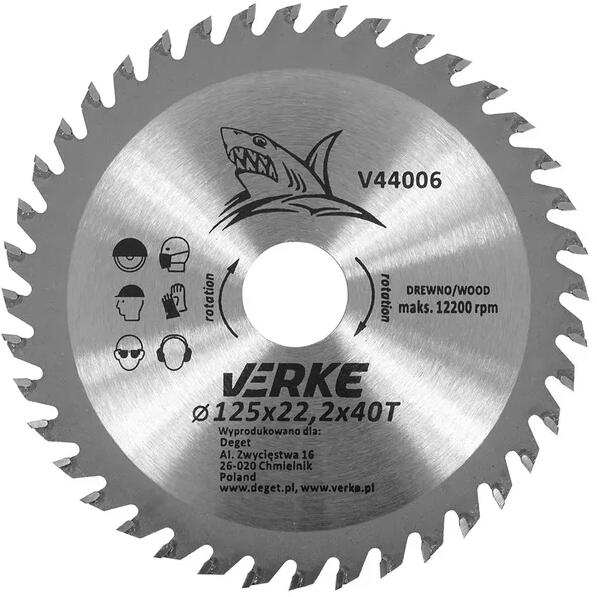 Ez a vídiás körfűrészlap fa és minden faalapú anyag vágására alkalmas, beleértve a rétegelt lemezt, a lapokat, a deszkákat, a tuskókat, az ágakat és a lágy műanyagokat. A keményfém lapka hosszú élettartamot biztosít a szerszámnak, és lehetővé teszi a többszöri élezést. Műszaki adatok: Tár csaátmérő: 125 mm Belső furat: 22,2 mm Redukciós gyűrűk: 12,7 mm, 16 m
