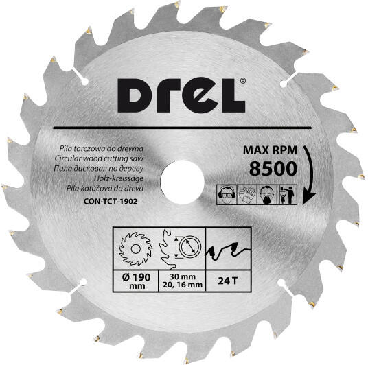 A termék leírása: Drel kiváló minőségű acél körfűrészlap keményfém fogakkal. A termék jellemzői: Volfram-karbid hegyes fogak Kiváló minőségű acélból készült Alkalmas orientált szállemez (OSB), közepes sűrűségű farostlemez (MDF), rétegelt lemez és műanyag vágására Ideális barkácsprojektekhez és építkezéshez