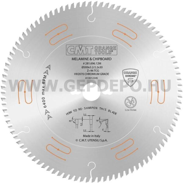 CMT alacsony zajszintű, krómozott körfűrészlap bútorlapokhoz és finom vágásokhoz 300mm f:30 Z96 Kiváló minőségű, hosszú életű fűrészlap méretre vágáshoz, elővágó használatával. Krómozott felülettel, zajcsillapított kivitelben. Fűrészlap átmérő (D): 300 mmFűrészfogak száma (Z): 96 dbα szög értéke: α = 5°β érték: β = TCGTermékcsalád: 281.6-7Fűrészf