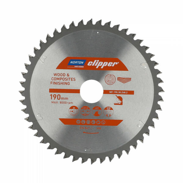 A Norton Clipper Mitre ATB Neg foggeometriájú körfűrészlapokat fa és kompozitok vágására tervezték . Kapható WF (fa befejező) és WR (fa aprító) verziókban. A típustól függően a tárcsákat gyors, sima, hosszanti vagy keresztirányú vágáshoz tervezték. A széles átmérő-tartomány és a fogak száma miatt a tárcsák minden vágási művelethez alkalmasak. Az acéltestre s