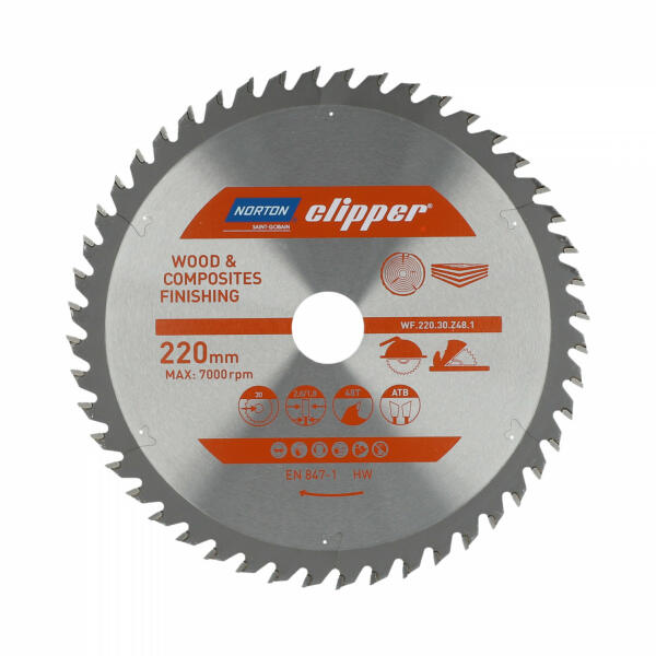Norton Clipper Pro Wood Finishing fűrészlapokat körfűrészekkel és asztali fűrészekkel való munkavégzésre tervezték. A szinterezett karbidból készült ATB geometriájú fogak garantálják a tárcsák tartósságát és megbízhatóságát puhafa, keményfa és kompozitok vágásakor. A körfűrészlapok professzionális élezésre alkalmasak, így hosszabb ideig is tarthatnak. A tár