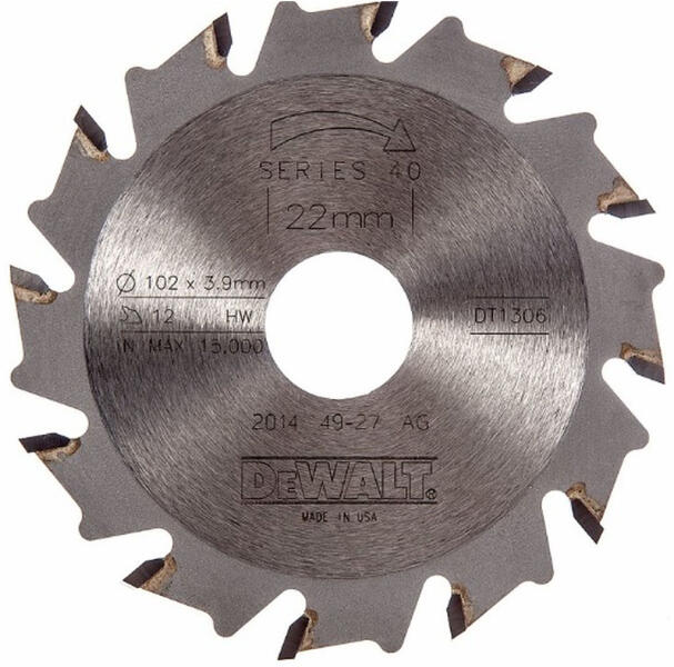 DeWALT DW682K marószerszámokkal való használatra Átmérő: 102 mm Fúrás: 22 mm Fogak: 12