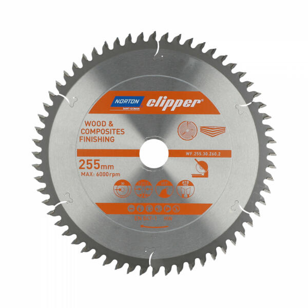 A Norton Clipper Mitre ATB Neg foggeometriájú körfűrészlapokat fa és kompozitok vágására tervezték . Kapható WF (fa befejező) és WR (fa aprító) verziókban. A típustól függően a tárcsákat gyors, sima, hosszanti vagy keresztirányú vágáshoz tervezték. A széles átmérő-tartomány és a fogak száma miatt a tárcsák minden vágási művelethez alkalmasak. Az acéltestre s