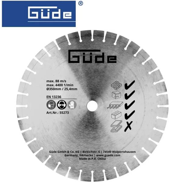 Alkalmazás: beton, természetes kő, tégla, macskakő, vasbeton Műszaki adatok: Maximális fordulatszám: 4400 ford. /perc Maximális vágókorong sebesség: 88 m/s Maximális vágásmélység: 130 mm Tárcsaátmérőj: 350 mm Belső furatátmérő: 25,4 mm Tárcsaszélesség: 2,2 mm