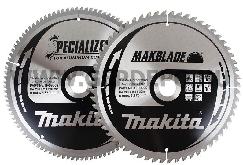 Duo-pack ajánlat!Makita Makblade körfűrésztárcsa Cikkszám: B-09020 Széles kínálat az összes gérvágó fűrészhez. Magas minőségű volfram-karbid fűrészfog preciziós élezése biztosítja a hosszú életciklust, a vékony vágási felület a kisebb anyagveszteséget és nagyobb előtolást. ÉS Makita Specialized körfűrésztárcsa Cikkszám: B-09662 Tökéletes vágás alumínium