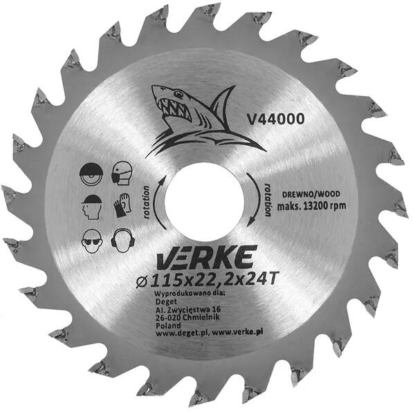 A VERKE 115 mm-es, 24 fogas, vídiás körfűrészlap ideális szerszám fa és faalapú anyagok, mint rétegelt lemez, faforgácslap, deszka, tuskó, ág, valamint puha műanyagok vágására. A keményfémlapkákból készült élezés hosszú élettartamot és többszöri élezési lehetőséget biztosít. Műszaki adatok: Tár csaátmérő: 115 mm Belső furat: 22,2 mm Redukciós gyűrűk: 12,